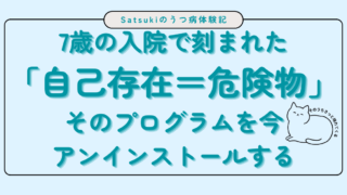 なぜ、自分の特性や体調不良を無視し続けたのか?それは7歳の時、大人用の精神安定剤を飲んで入院した体験に起源があります。自分の存在=危険物と刻まれた論理と、Satsuki式アンインストール法を解説。