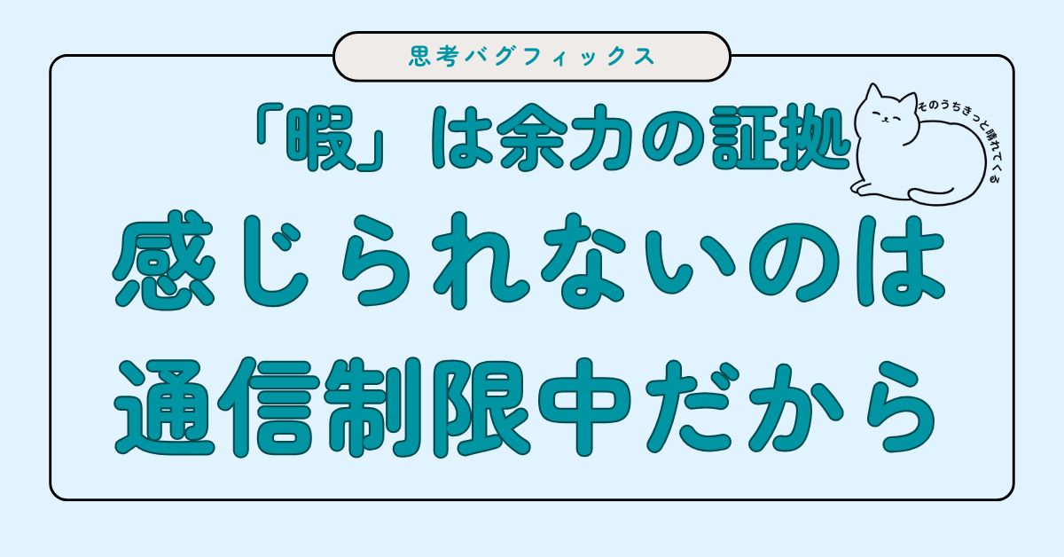 実は、「暇を感じられない状態」そのものが、深刻なシステムエラーのサインなのです。