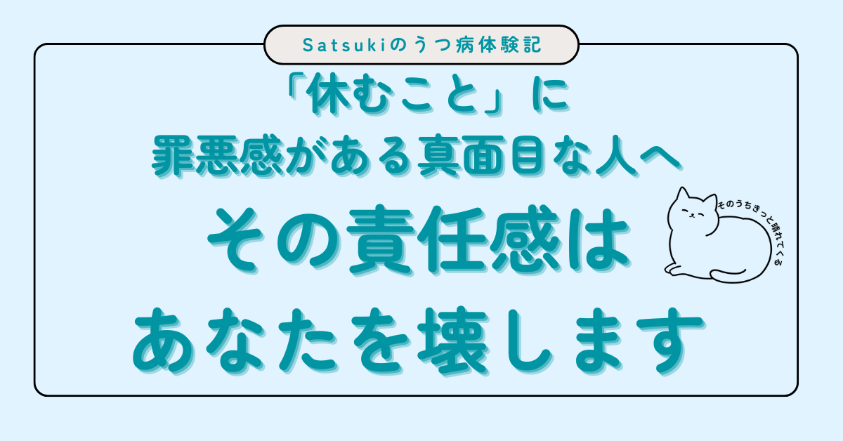ストレスフルな状況で、身体は鉛のように重いのに、「休むこと」に強烈な罪悪感を感じたことはありませんか? 誰にも迷惑をかけられない、私がいなきゃ仕事が回らない――そう思って、あなたの心身を一番に壊したのが、その「イカれた責任感」ではないでしょうか。