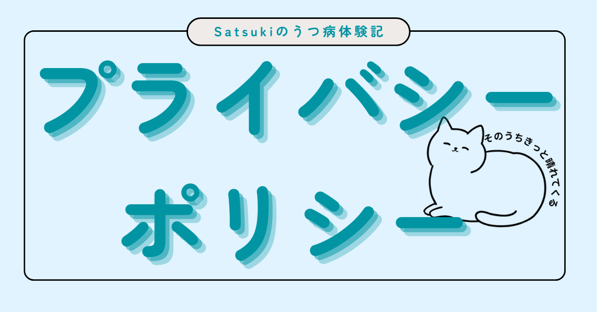 当ブログ「Satsukiのうつ病体験記|そのうちきっと晴れてくる」(以下、当ブログ)では、お問い合わせなどの際に、名前(ハンドルネーム)、メールアドレス等の個人情報をご登録いただく場合がございます。