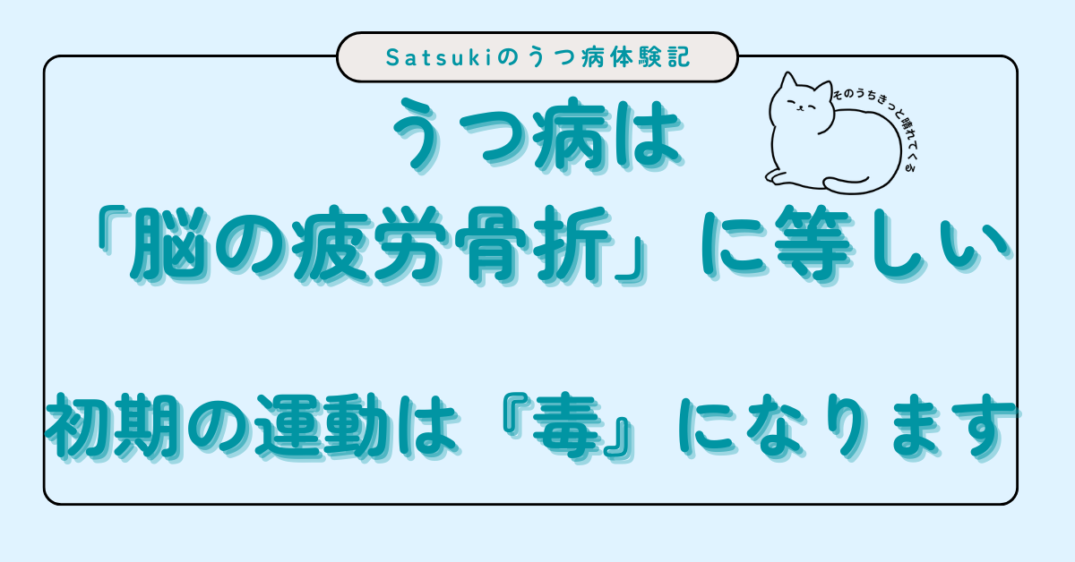 うつ病はすでに骨折をしている状態です。骨がまだつながっていないのに、「運動するといいよ。」と言われて、一生懸命動かしているような状態になっているんだと思います。
